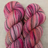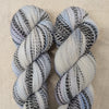 Plied, pretty, versatile Crunadh Zebra Sock from Australia's Hannah Ginn of Circus Tonic Handmade will yield stunning socks, but don't dismiss the possibilities this beauty offers for garments and accessories, perhaps paired for colorwork with a complementary solid or tonal. Yokes? Brioche? Experiment! Enjoy! Hand or machine wash, gentle cycle, and lay flat to dry.