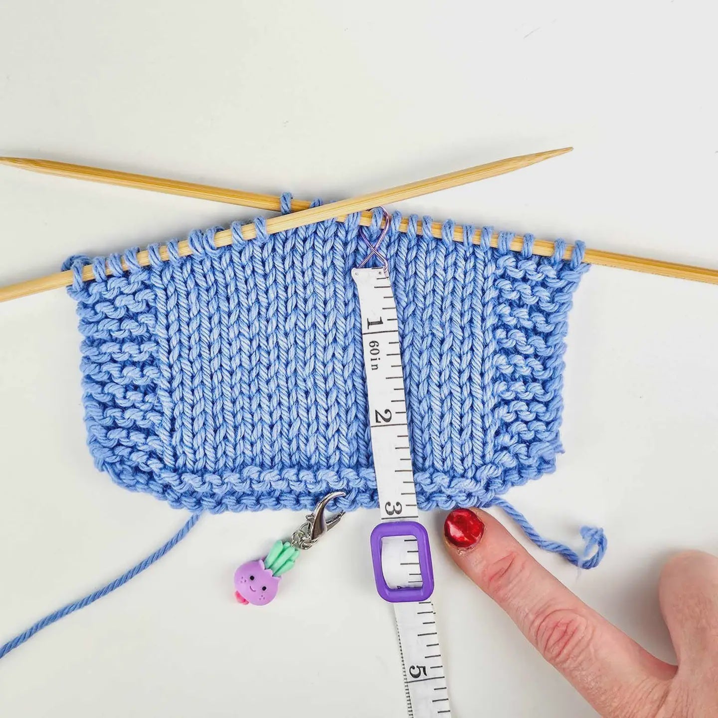 Behold the Work Until . . . Measuring Tape! This tool acts as both a stitch marker and a handy tool to keep your work on track. Simply set the slider to the measurement you're working toward, and knit until you reach your goal. The Work Until . . . Tape Measure fits up to US10.5 needles and measures up to 12.5".